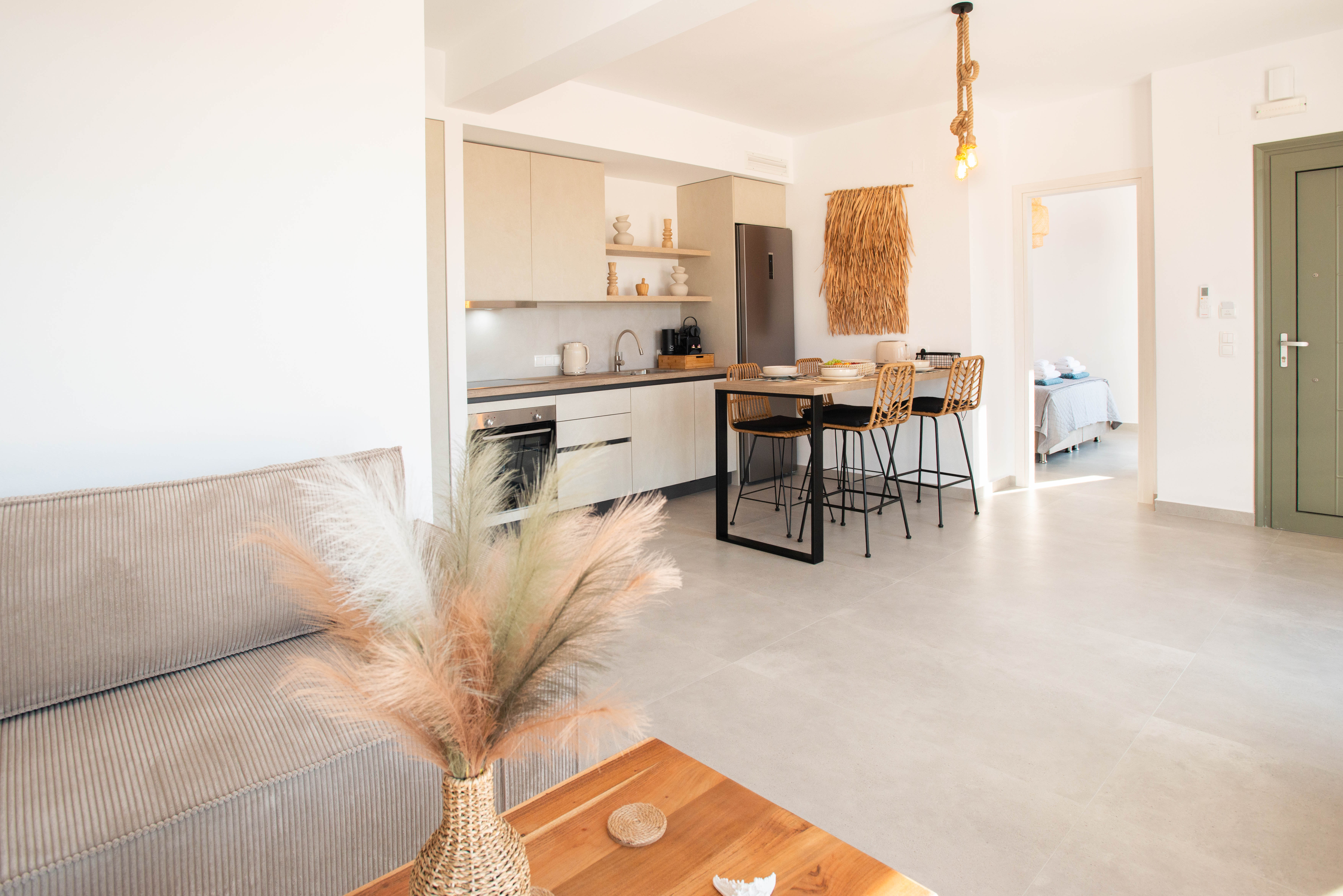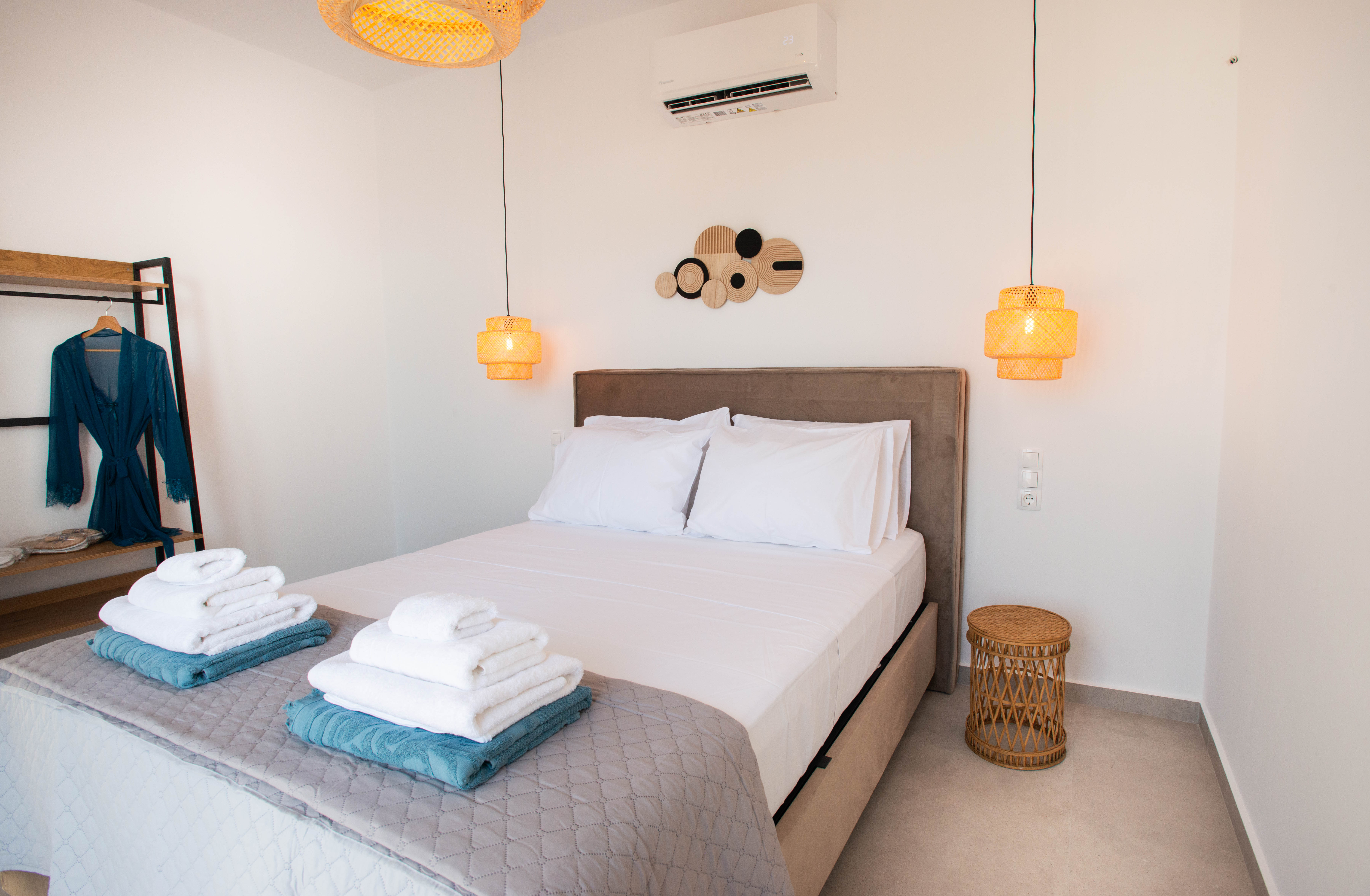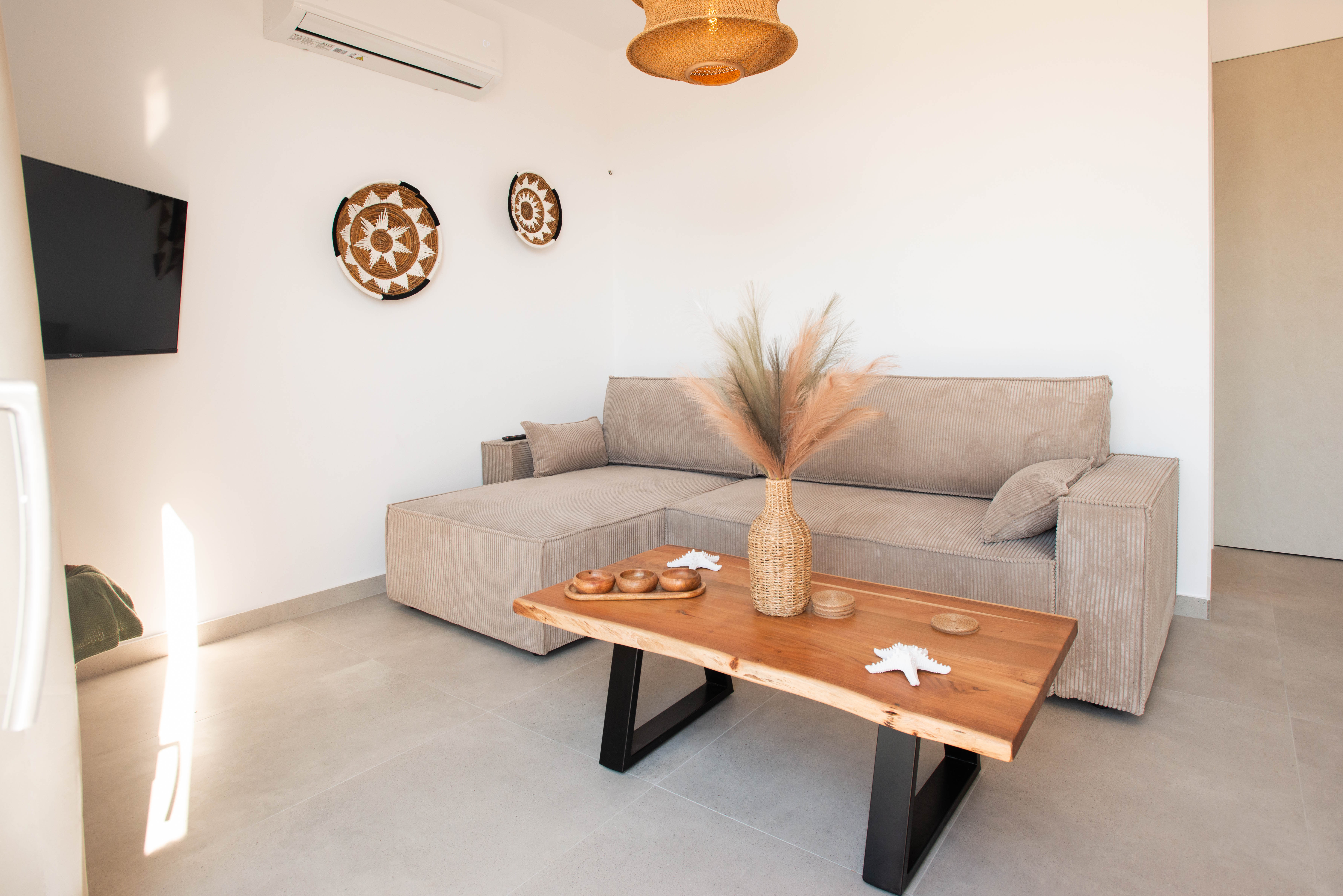 Blue Bay Suite, part of the Mediterranean Blue Suites & Villa complex, is located just a 3–4 minute walk from the peaceful Afrathias beach in southern Crete. Ideal for couples, families, or solo travelers, this stylish suite offers 1 bedroom, a fully equipped kitchen, bathroom, a cozy living room with a sofa bed, and a spacious veranda with open views. Set in a tranquil location near Kokkinos Pirgos, Matala, and Kalamaki, with easy access to important archaeological sites.