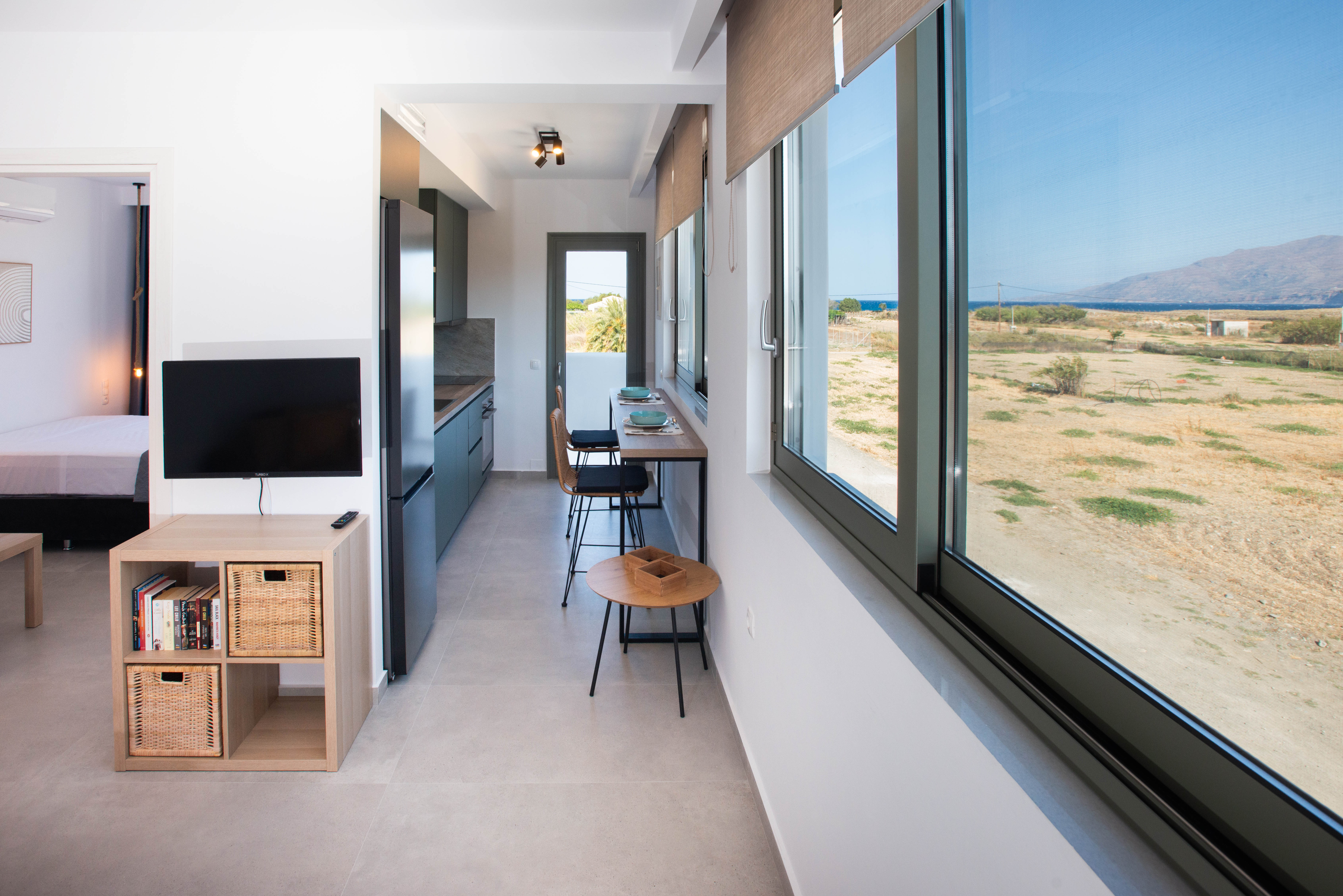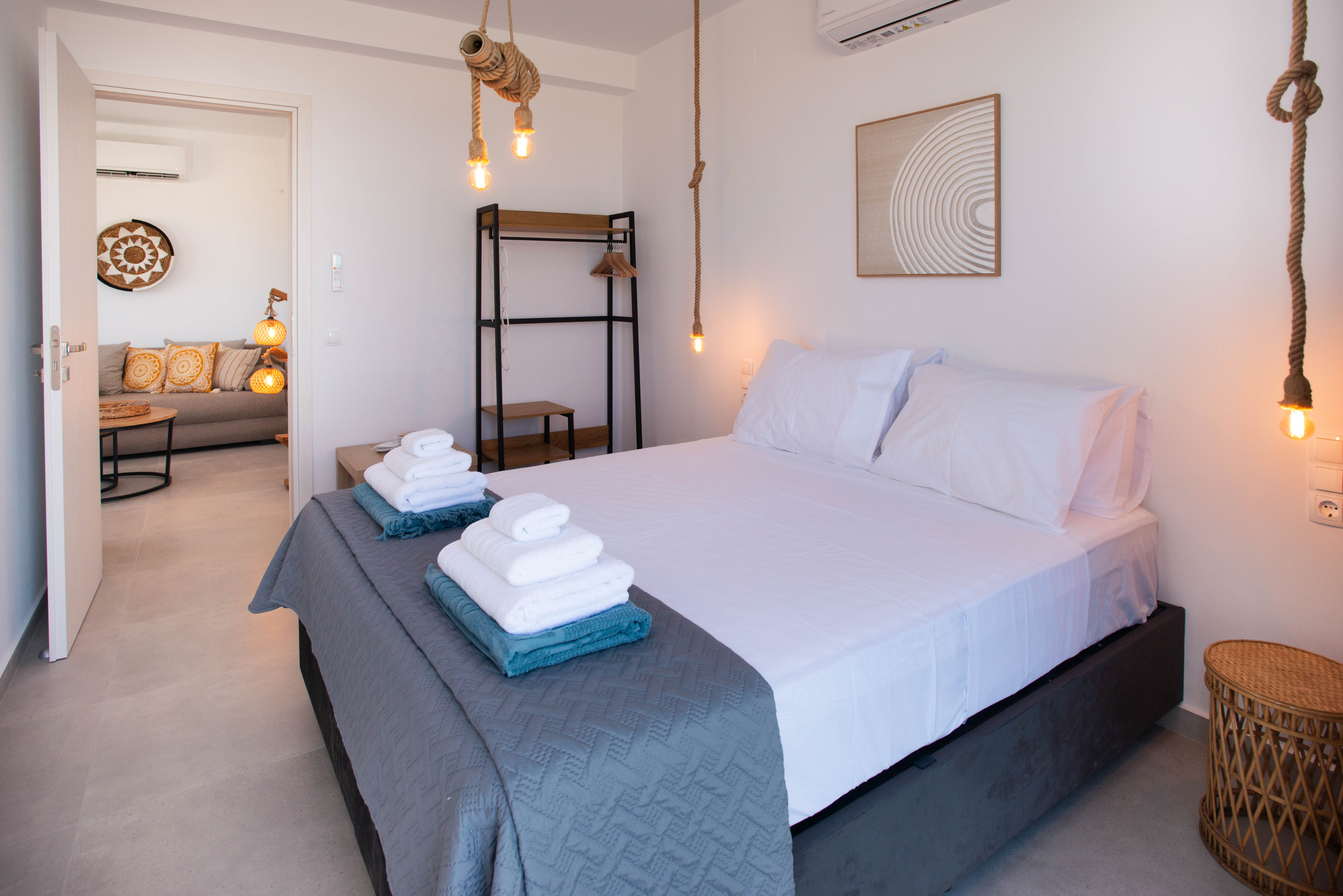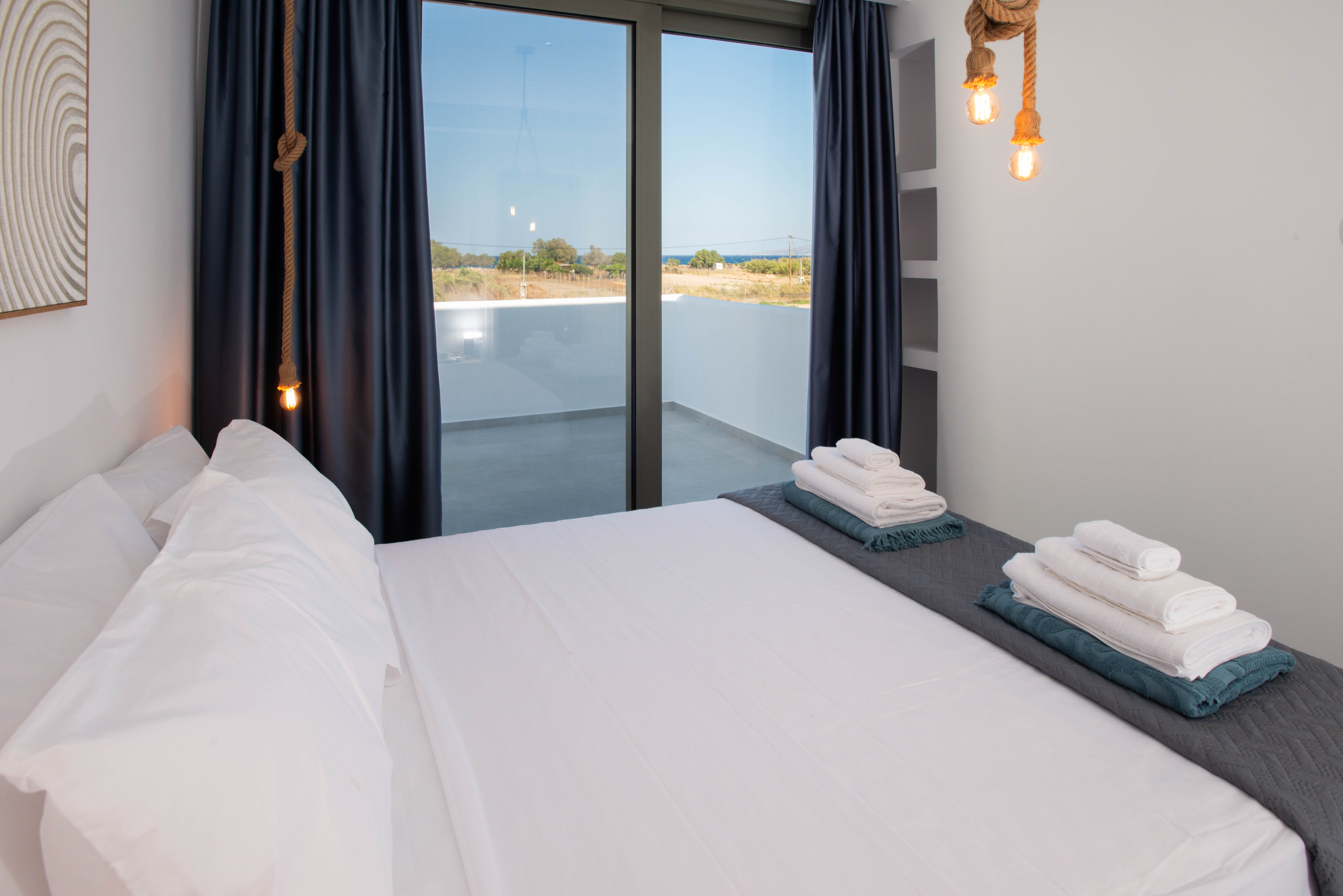 Blue Horizon Suite, part of the Mediterranean Blue Suites & Villa complex, is just a 3–4 minute walk from the peaceful Afrathias beach in southern Crete. This elegant Suite, located on the 1st floor of the complex, features 1 bedroom, a fully equipped kitchen, bathroom, a cozy living room with a sofa bed, 1 balcony, and a spacious veranda. Guests can also enjoy a private barbecue area*, ideal for relaxed outdoor dining. Located in a quiet area near Kokkinos Pirgos, Matala, and Kalamaki.