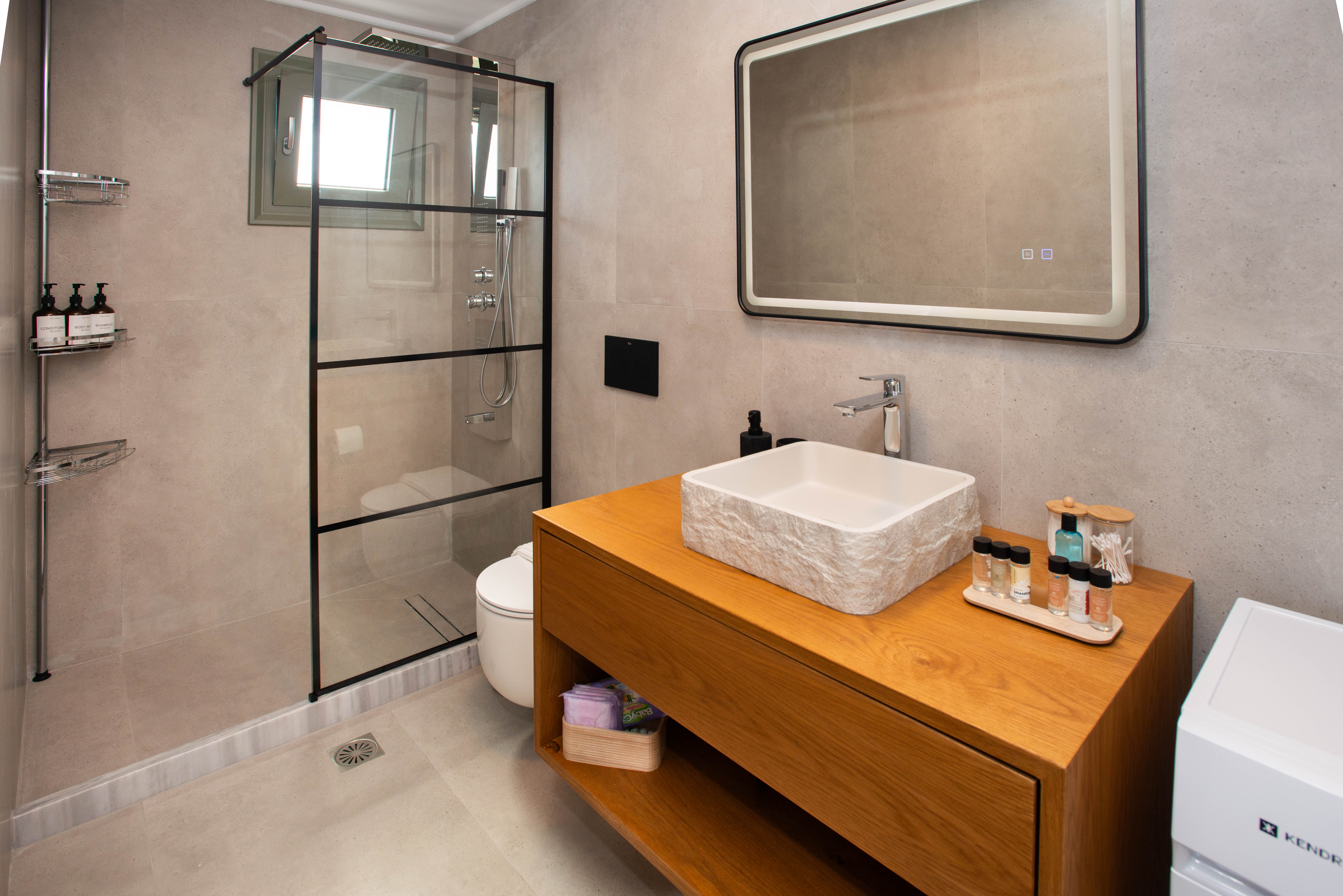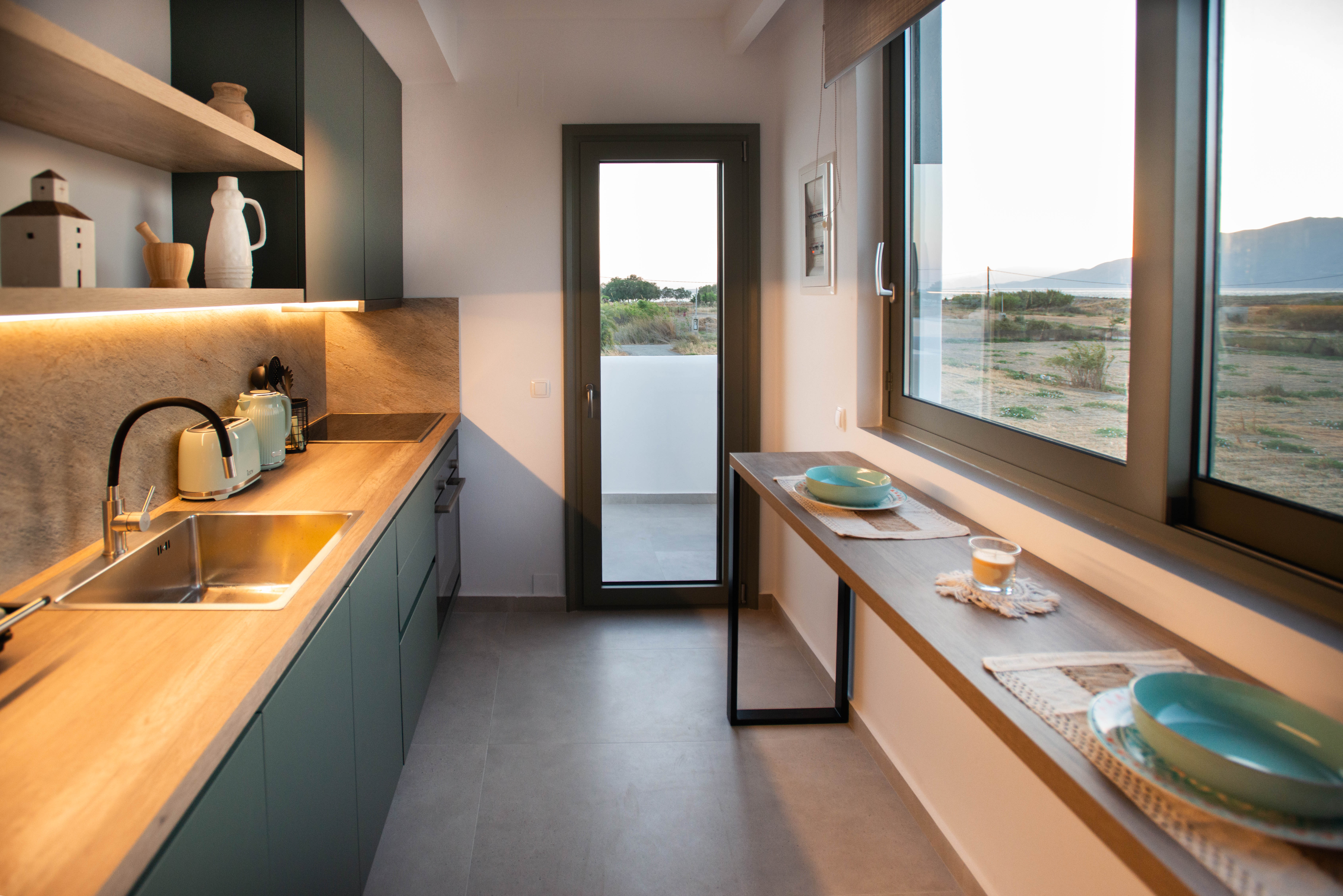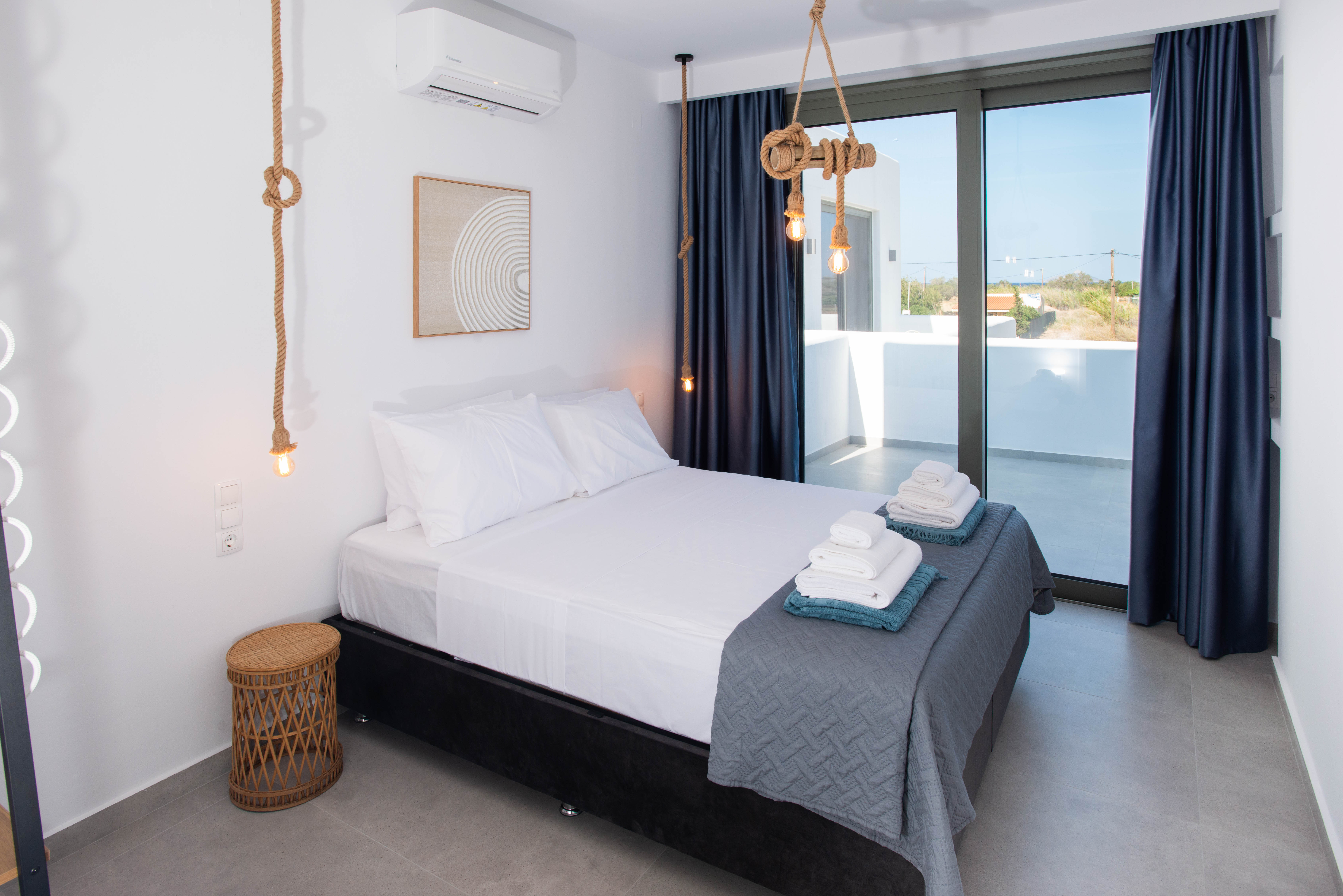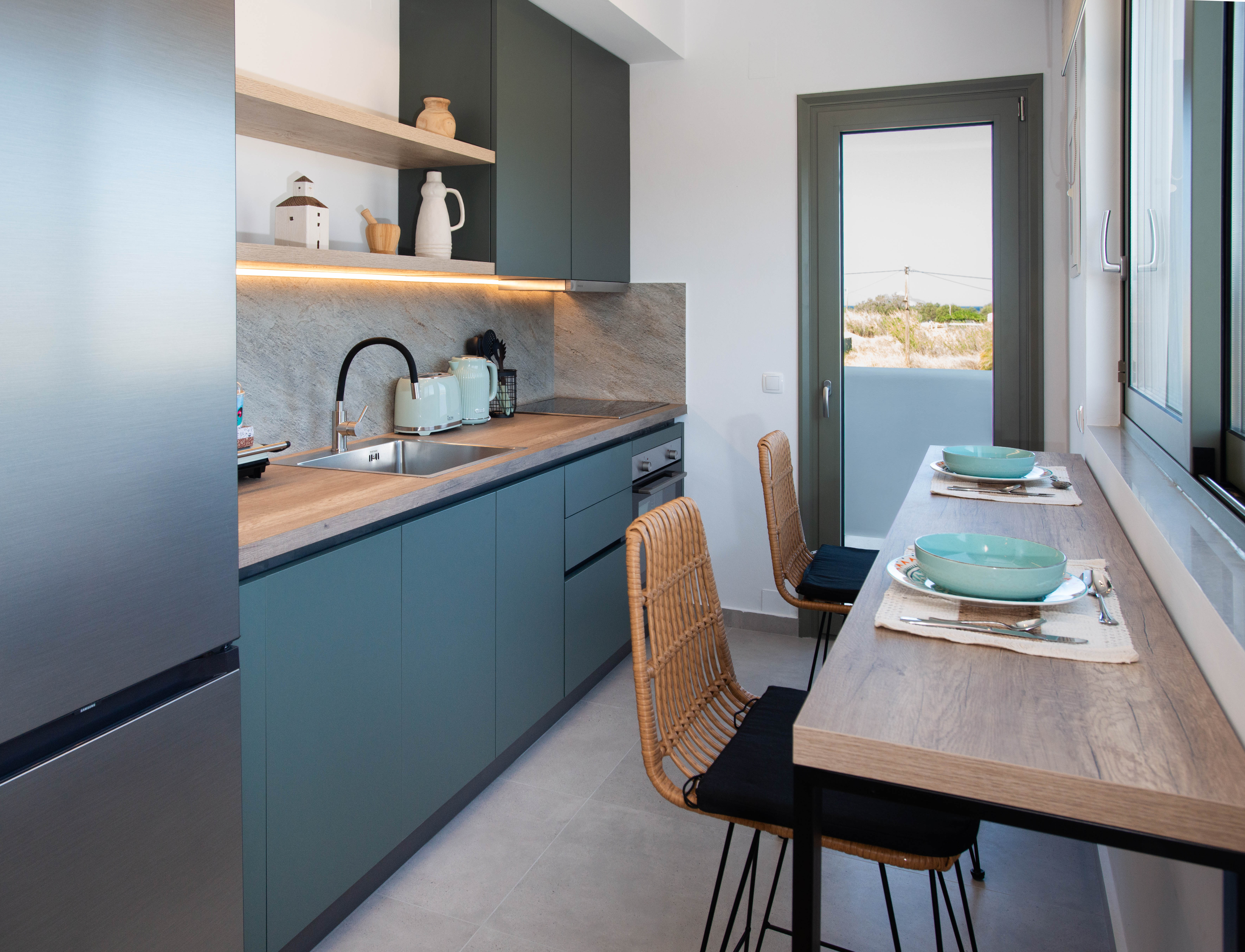 Blue Horizon Suite, part of the Mediterranean Blue Suites & Villa complex, is just a 3–4 minute walk from the peaceful Afrathias beach in southern Crete. This elegant Suite, located on the 1st floor of the complex, features 1 bedroom, a fully equipped kitchen, bathroom, a cozy living room with a sofa bed, 1 balcony, and a spacious veranda. Guests can also enjoy a private barbecue area*, ideal for relaxed outdoor dining. Located in a quiet area near Kokkinos Pirgos, Matala, and Kalamaki.